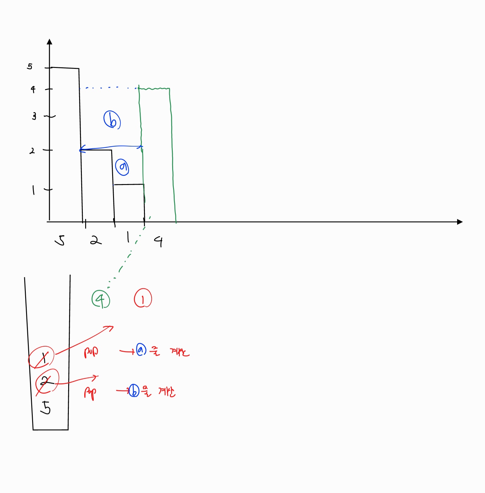 # 스택의 decreasing 조건을 불만족하면 만족할 때 까지 pop 한다